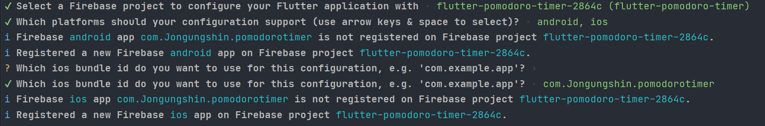 flutter fire configure로 firebase와 앱을 연동 해준다.