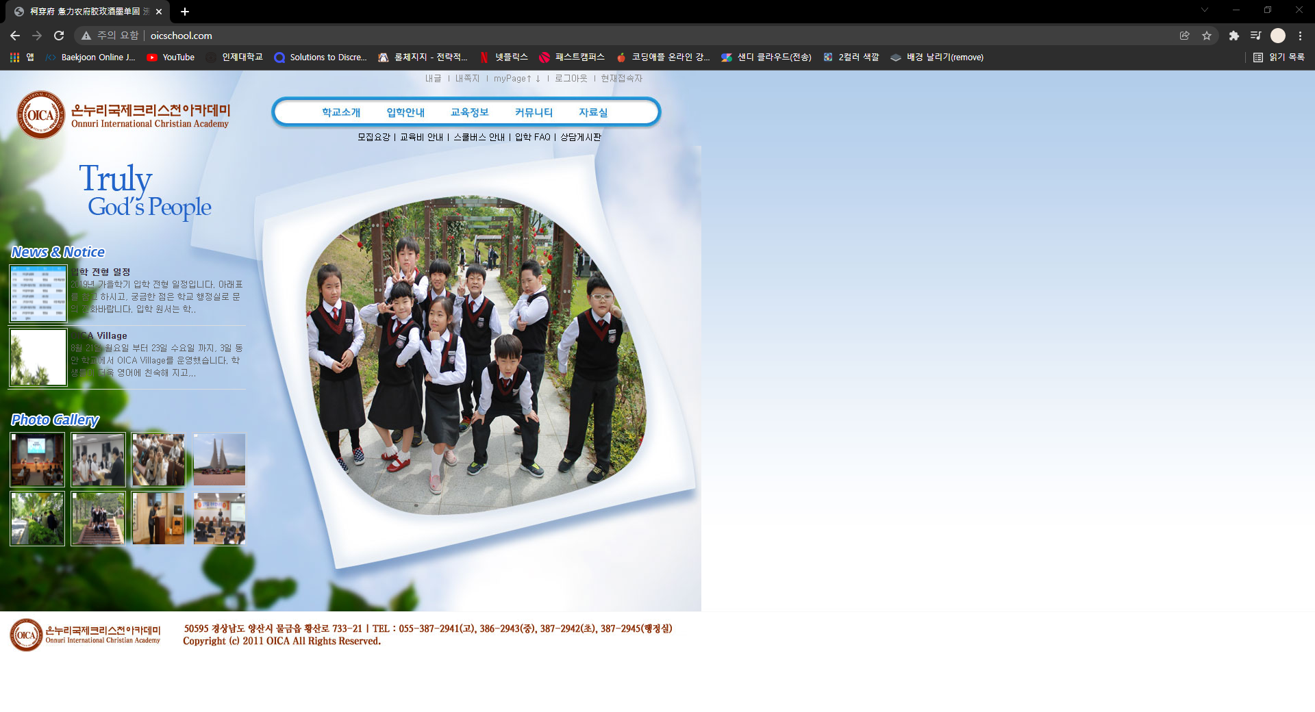 또 마침 개발 해야 할 것이 존재하였고.. 바로 내가 졸업한 온누리 국제 학교이다. 문제가 많은 웹 페이지인 것을 알 수있는데 디자인은 그래도 당시에 템플릿? 같은걸 구매해서 사용 한 것 같아서 괜찮지만, 일단 관리를 하는 사람이 없다는 것이 첫번째 문제이고, 백엔드 차원에서 관리 하는 사람도 누군지 모르겠고.. 그냥 사용자도 없고 취약점은 많은 사이트였다.