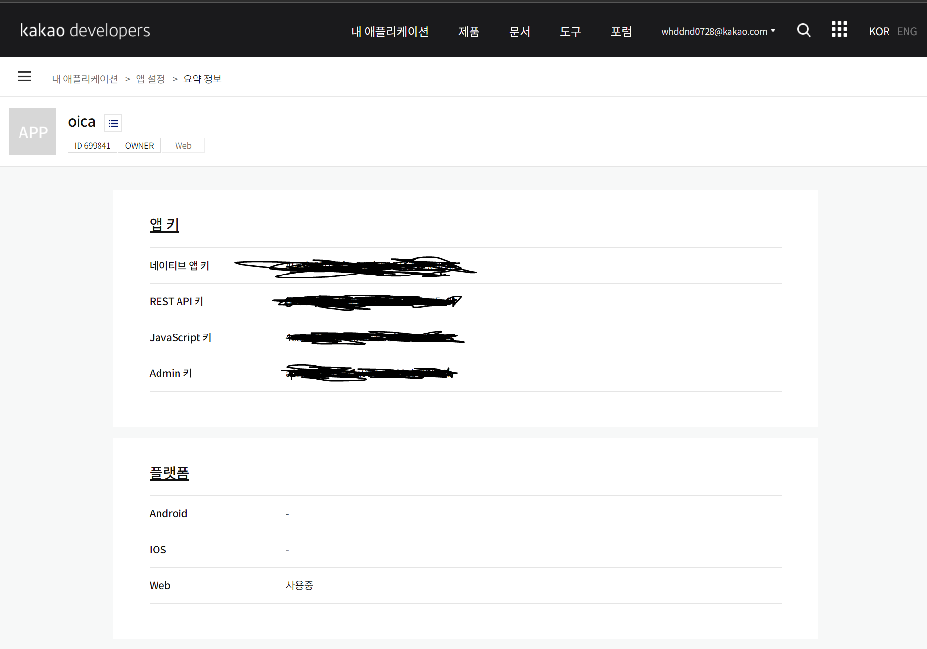 카카오 지도 API는 무료로 제공되고 있다. 지도 API KEY를 등록하면 바로 사용할 수 있도록 되어있다.