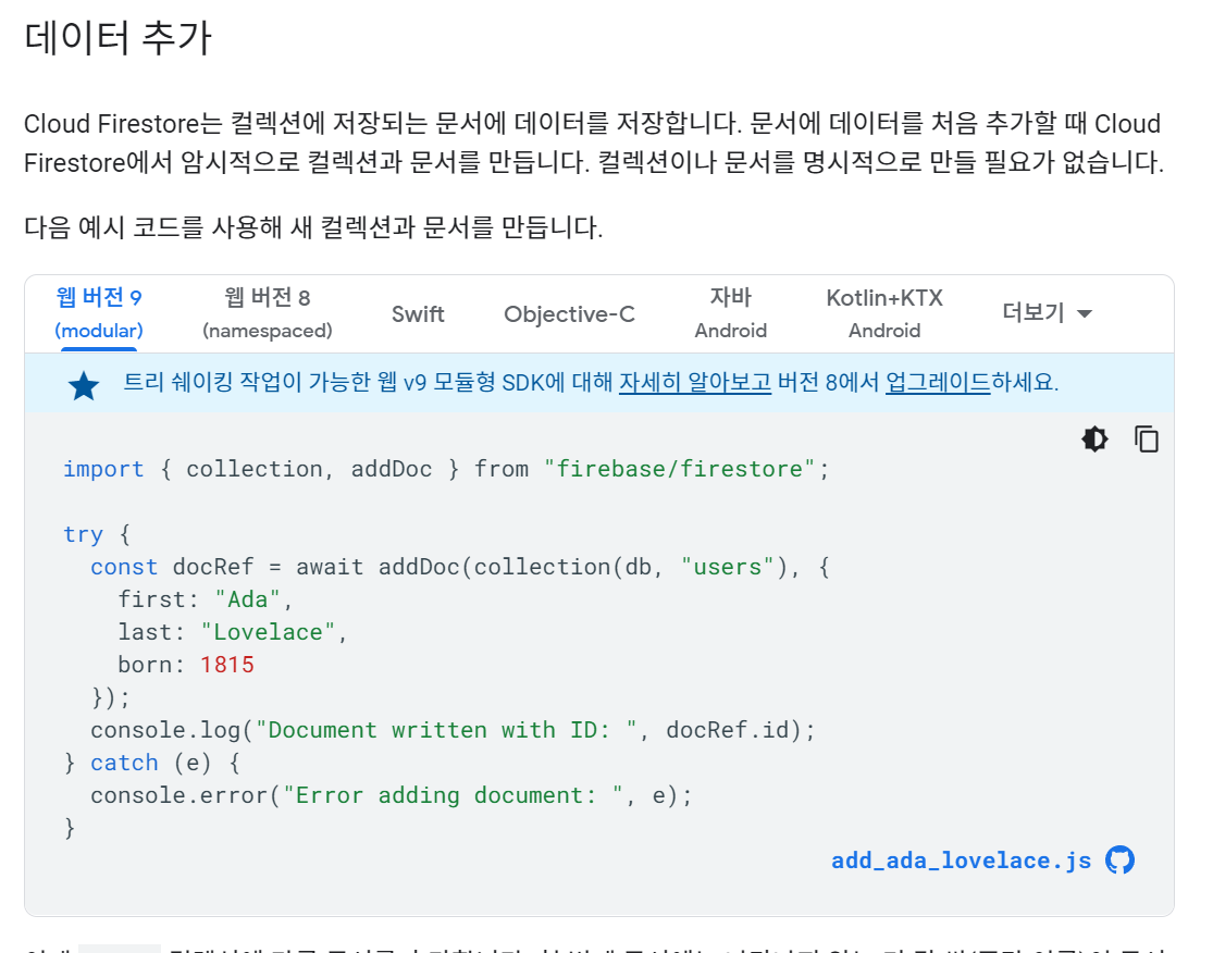 이 또한 firebase 9이 되면서 문법이 새롭게 바뀌었다.