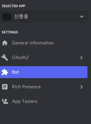 마지막 줄 본인의 Token엔 Bot창에서 토큰을 발급 받아 입력 해주면 된다.