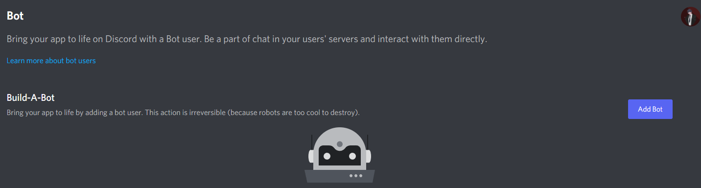 2. 오른쪽 Add Bot을 클릭 하여 봇을 추가 하고 그 뒤 Yes, I Do를 클릭 한다.