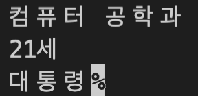 std::cout << "컴퓨터 공학과\n21세\n대통령";