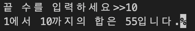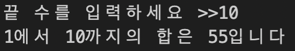 cout << "1에서 " << n << "까지의 합은 " << sum << "입니다.";