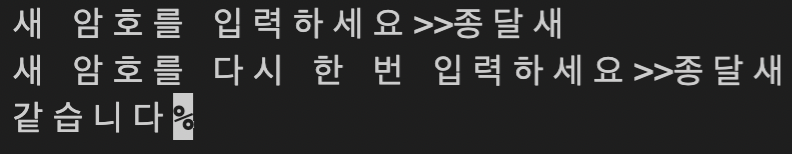 cout << "새 암호를 다시 한 번 입력하세요>>";