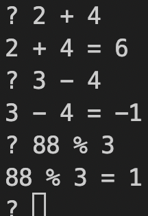 cout << a << " " << b << " " << c << " = " << a % c << endl;