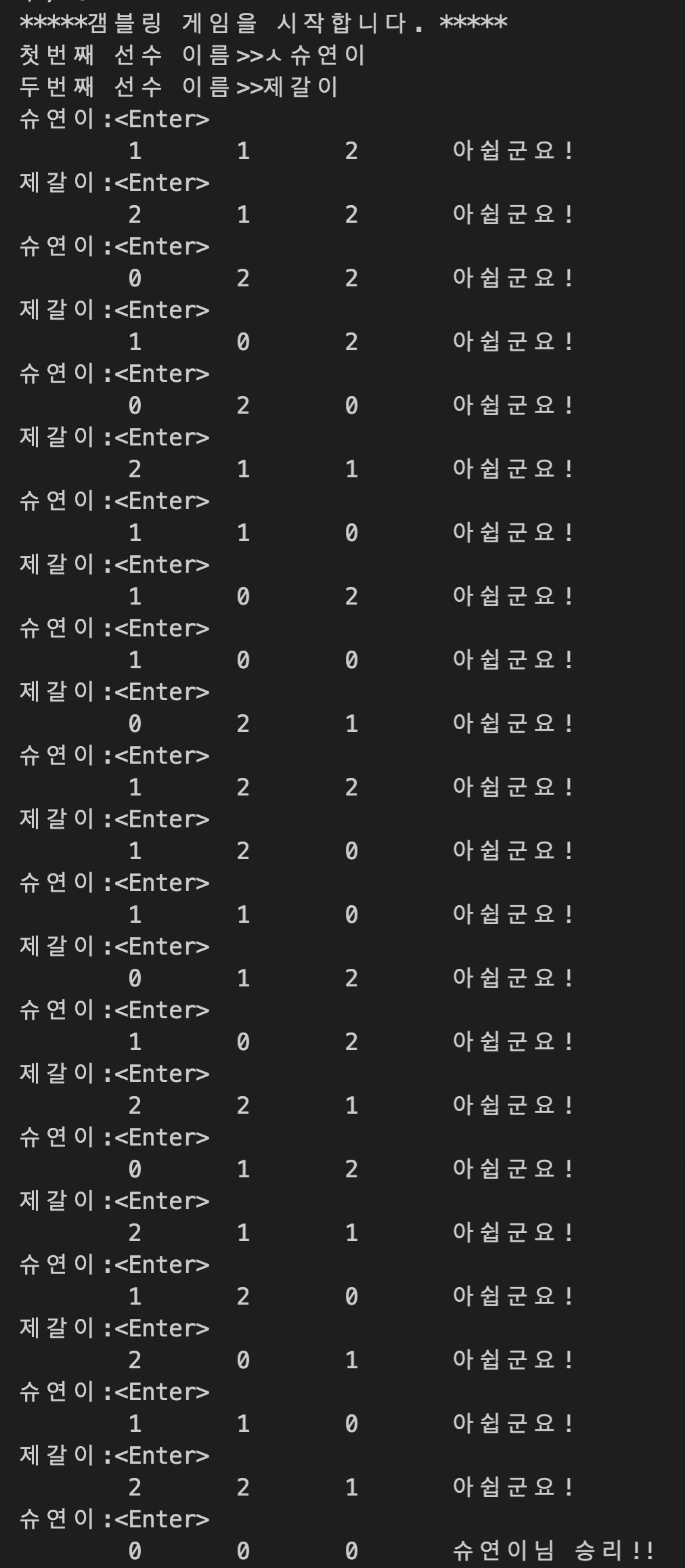 cout << "*****갬블링 게임을 시작합니다. *****" << endl;