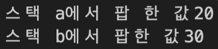 cout << "스택 b에서 팝한 값" << n << endl;