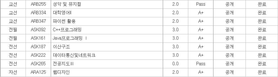 이번 학기도 감사하게도 4.5를 달성했다. C++에서 A뜰 줄 알았지만 A+를 받아서 달성할 수 있었다!!
