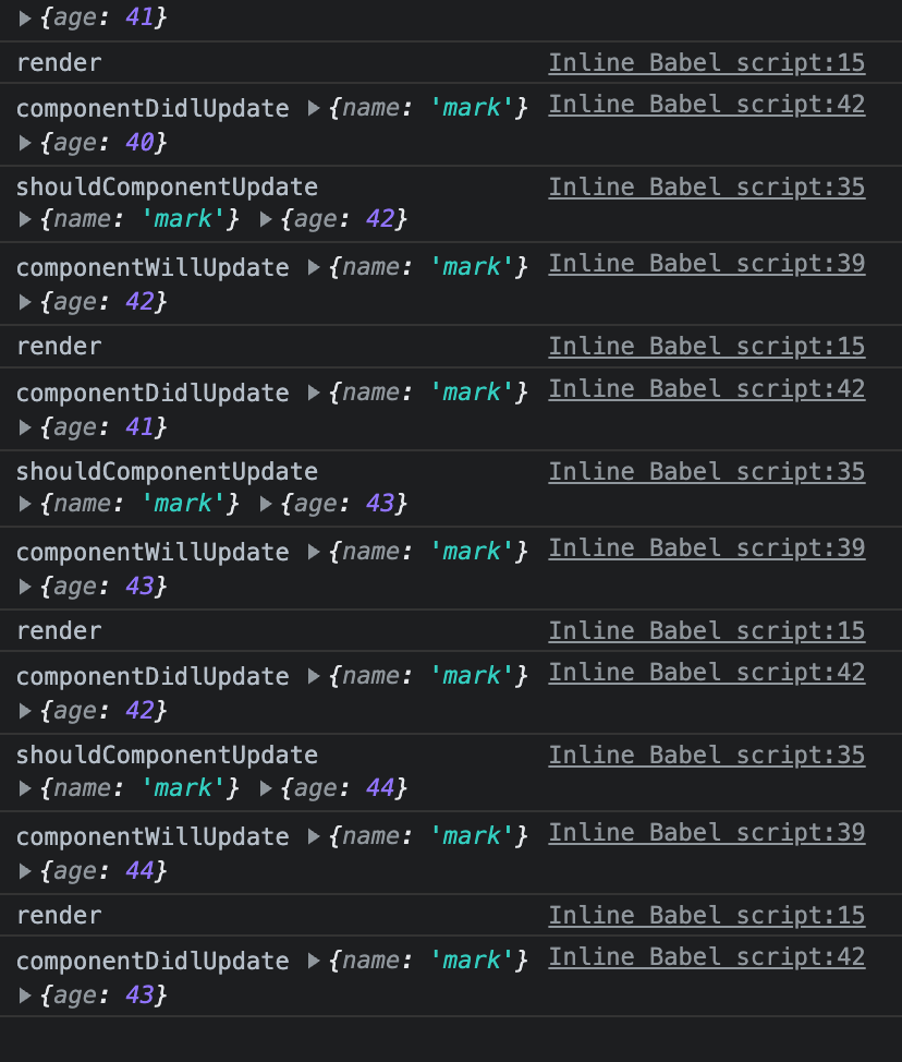 console.log('shouldComponentUpdate', nextProps, nextState);