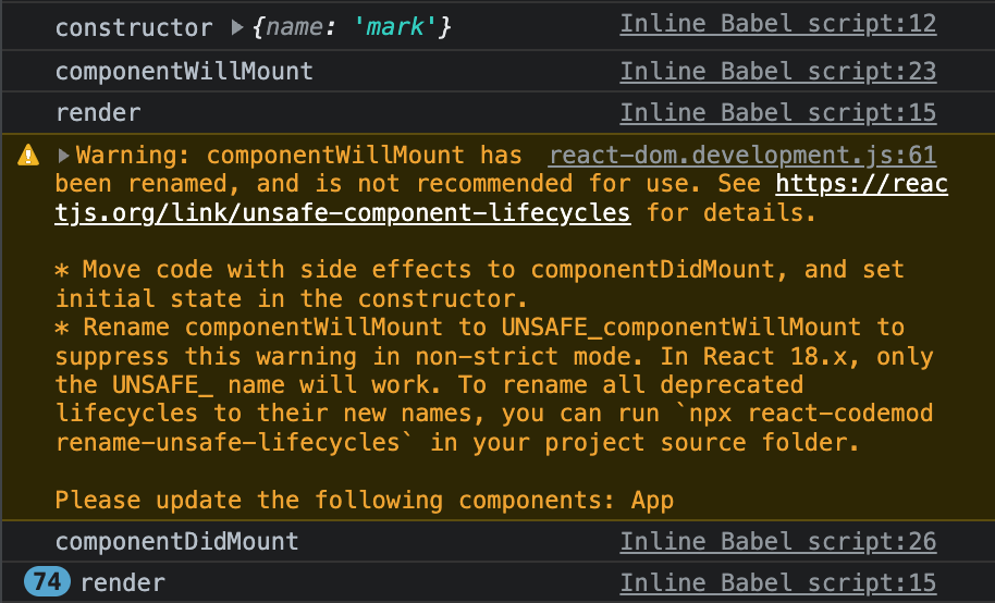 - Warning이 뜨는 이유는 상위 버전에서는 사라진 component life cycle들이 있기에 duplicated 될 위험이 있음을 알리는 것이다.