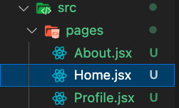 - 다음과 같이 cra로 만들어진 프로젝트의 src 안에 pages 폴더를 만들어 줘서 각각의 jsx 파일들로 라우팅 될 수 있도록 만들어 주었다.