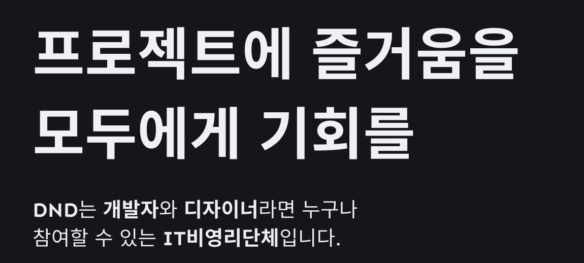 우선 DND는 프론트엔드 개발자 2명, 백엔드 개발자 2명, 디자이너 2명으로 총 6명으로 구성되어 사이드 프로젝트를 개발해 나갑니다. 저희 팀은 저 혼자 대학생(20살)이었고, 나머지 분들은 취준생 또는 직장인으로 구성되었습니다. DND를 하면서 가장 좋았던 점은 팀원 모두가 기회가 주어진 만큼! 할 수 있는 만큼! 매우 열심히 개발 하고 의견 내고 모두가 열심히 하려는 의지가 있어서 (학교 팀플과는 매우 다르게) 너무 재밌게 활동할 수 있었던 점이 좋았습니다!