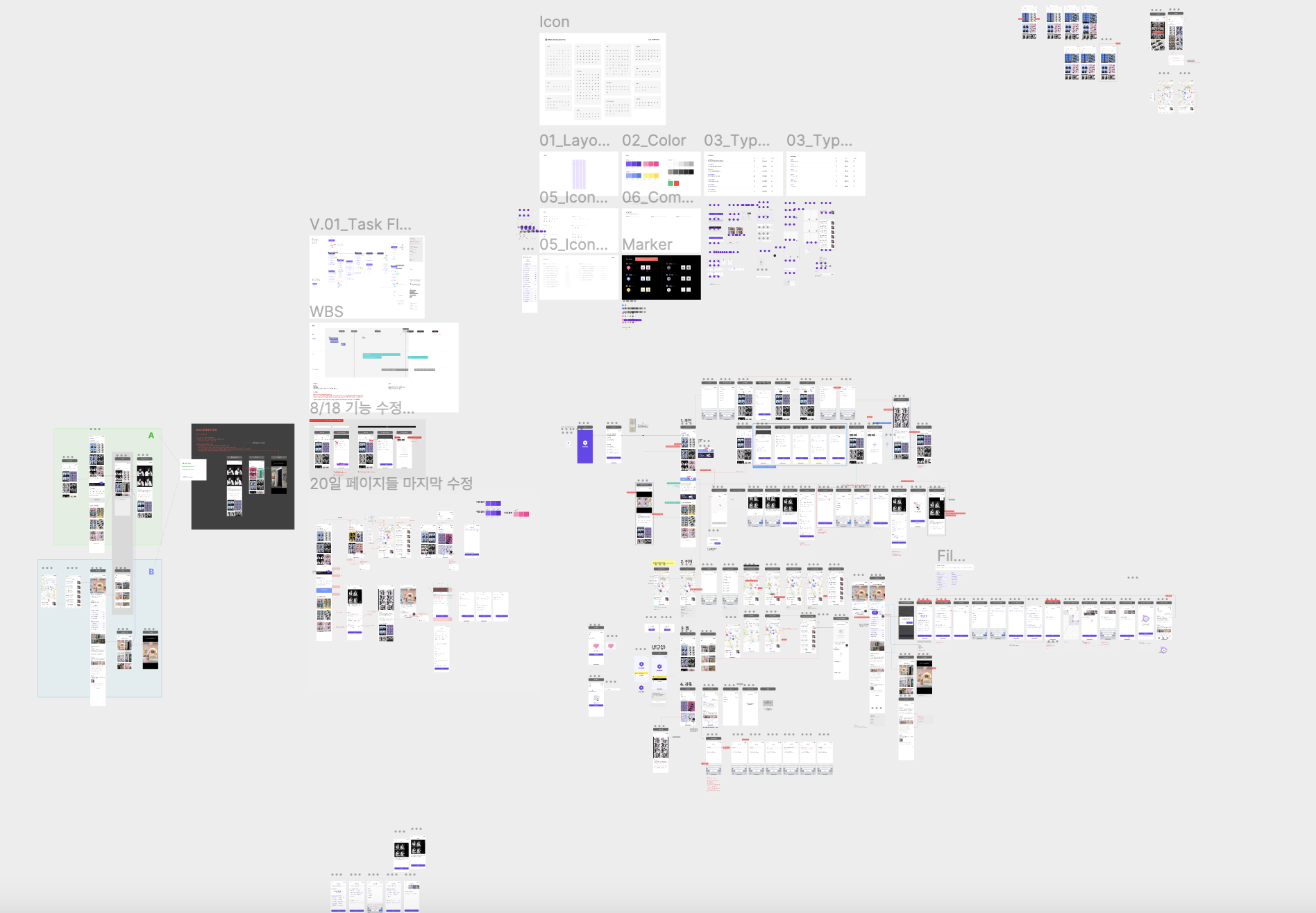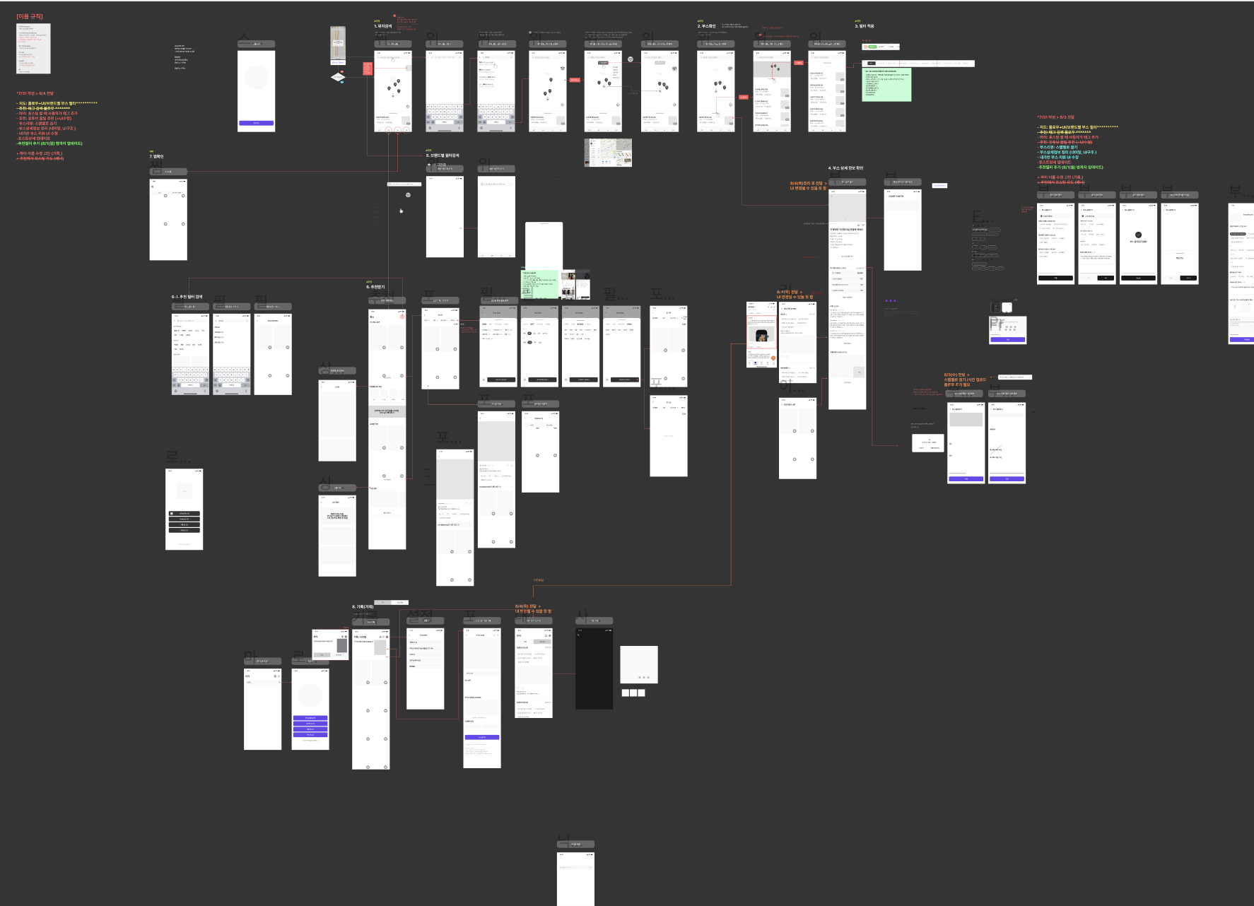그동안 디자이너 분들은 다양한 리서치 방법들을 도입하여 페르소나를 만들어 우리 서비스가 나아가야 할 방향과 기획되어야 할 내용들을 정리하셨고 4주 차부터 앱의 와이어 프레임이 구성되었습니다.