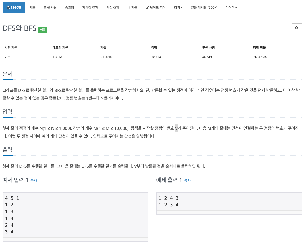 https://www.acmicpc.net/problem/1260