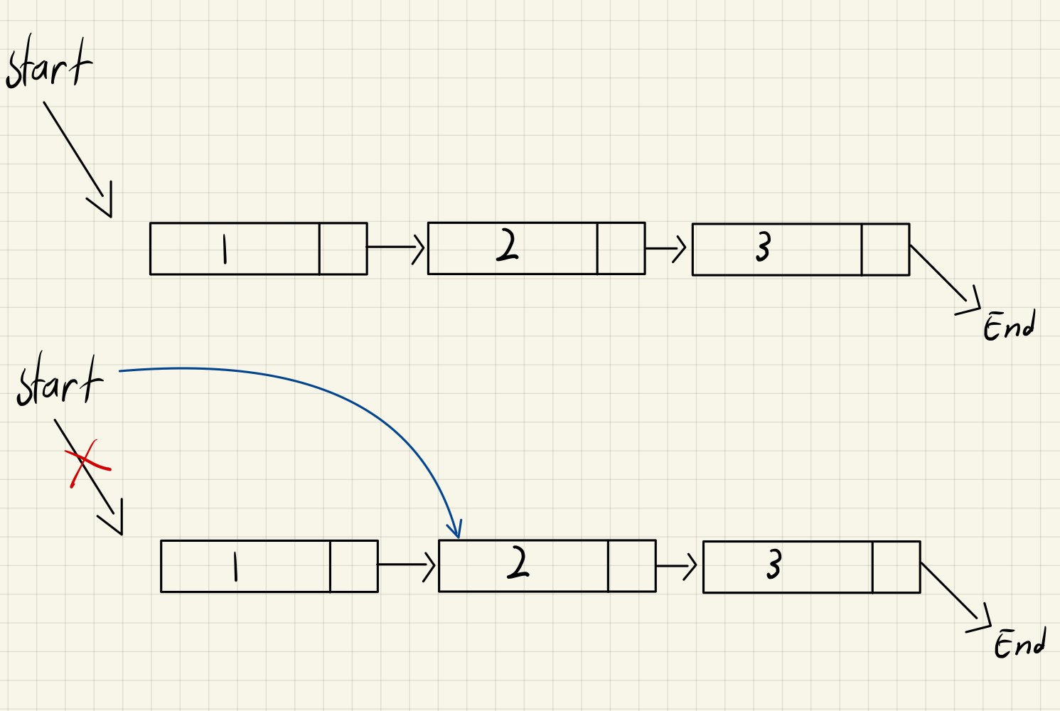 1, 2, 3에서 가장 먼저 들어왔던 1의 값만 뺀다고 생각 해봅시다. 그럼 1을 빼기 위해서, 뒤에 있는 모든 index들이 한 칸 앞으로 와야 하는 귀찮은 일이 발생합니다. 어차피 빠른 컴퓨터가 할 건데, 무슨 상관이냐?라고 생각 할 수 있지만, 우리는 코드를 효율적으로 짜야할 의무(?)가 있기 때문에, O(N)의 연산을 잡아먹지 않고, O(1)의 연산만에 1을 뽑아 버릴 수 있는 링크드리스트를 사용하는 것입니다.