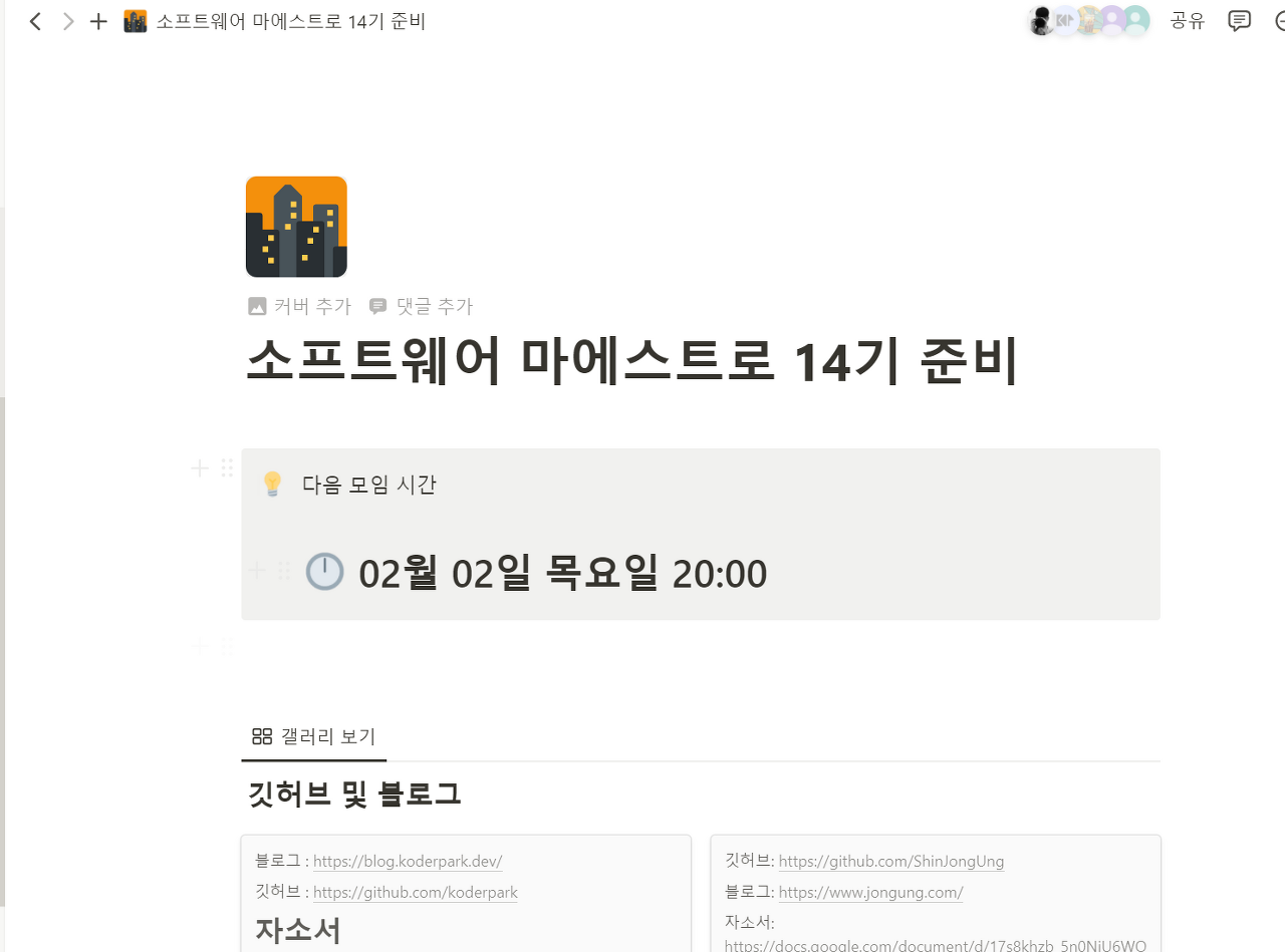 자기소개서를 혼자 작성하는 것이 역시 힘들 것 같아, 소마 14기 준비 오픈 카톡 방에서 자소서 첨삭 스터디를 운영하며 다양한 연수생 분들과 내용 첨삭 및 피드백을 거쳤습니다.