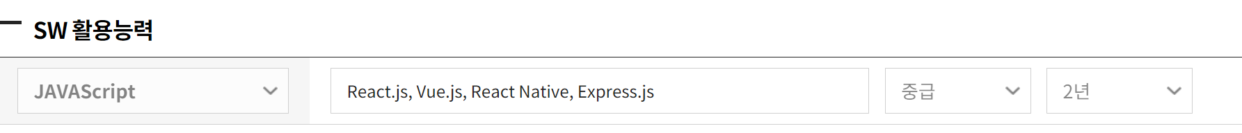 먼저 SW 개발 능력란에는 아래 사진과 같이 작성하였습니다.