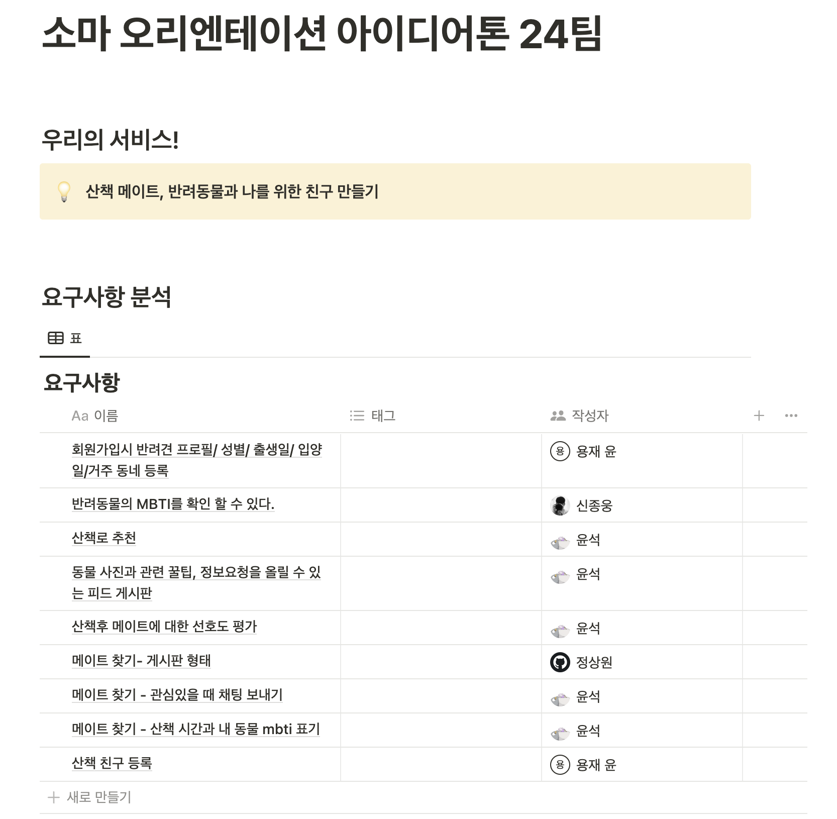 나름대로 팀끼리 아이디어톤 준비하느라 매우매우 바빴다. 주제는 SNS 만들기였고 우리는 "산책 메이드, 반려동물과 나를 위한 친구 만들기" 앱을 구상하고 기획하였다.