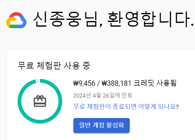 + 24시간 서버를 무료로 가동하는 것은 구글 클라우드 플랫폼에서 무료 계정에 주는 크레딧으로 여는 것으로 3개월 동안만 서버 사용이 가능합니다. (이미 무료 크레딧을 사용한 계정은 새로운 구글 계정을 파서 아래 글을 따라오시면 됩니다)