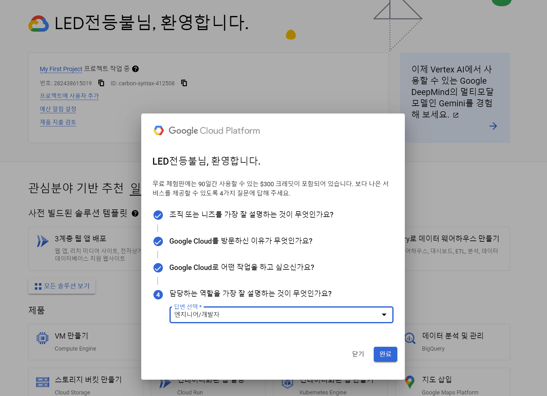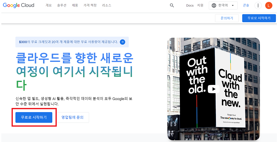 1. 제일 먼저 Google Cloud Flatform 사이트로 이동 후 계정 설정하기