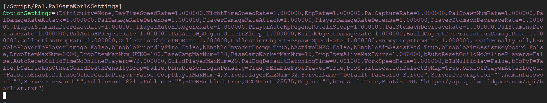 vi game/Pal/Saved/Config/LinuxServer/PalWorldSettings.ini