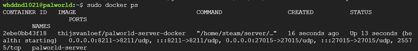 - 가장 왼쪽에 있는 Container ID를 가지고 먼저 서버를 꺼주세요. (stop 뒤에 있는 자리에 본인의 Container Id를 넣으시면 됩니다.)