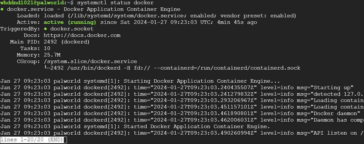 - 아래 명령어를 복사 붙여넣고 Enter (docker가 제대로 설치되었는지 확인)
