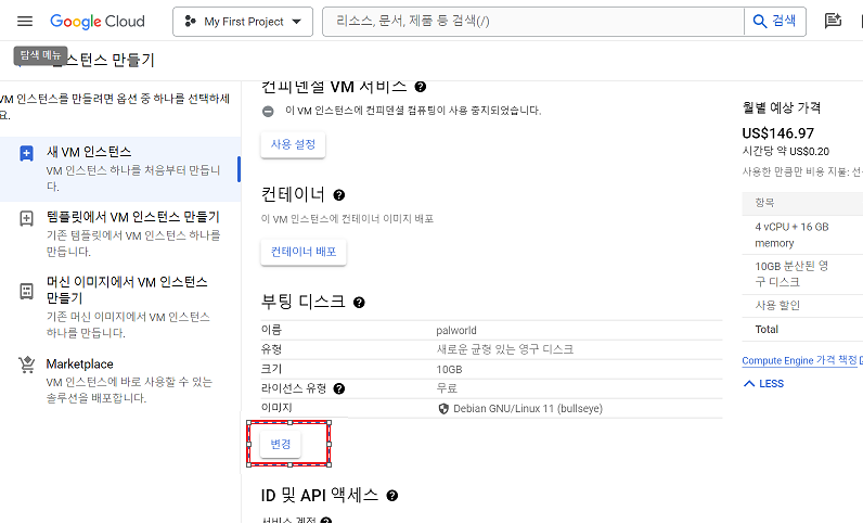 - 서버 사양은 원하시는대로 설정하시면 됩니다. 6명 이하 서버는 n2-standard-4로 설정하시면 됩니다. (그 이상 서버는 램을 올리시면 됩니다.)