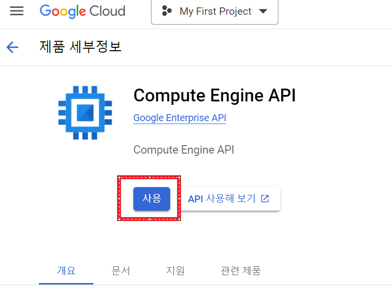 - Compute Engine API 사용 클릭 (로딩 시간 조금 소요 됩니다. 기다리시면 넘어가요!)