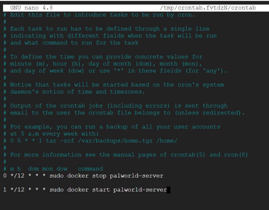 서버 램을 따로 증설하지 않는 한, 서버를 열 때 메모리 누수로 인해 서버가 계속 꺼지게 됩니다. 이를 방지하고자 12시간마다 자동으로 꺼졌다 켜지도록 설정해줍니다.