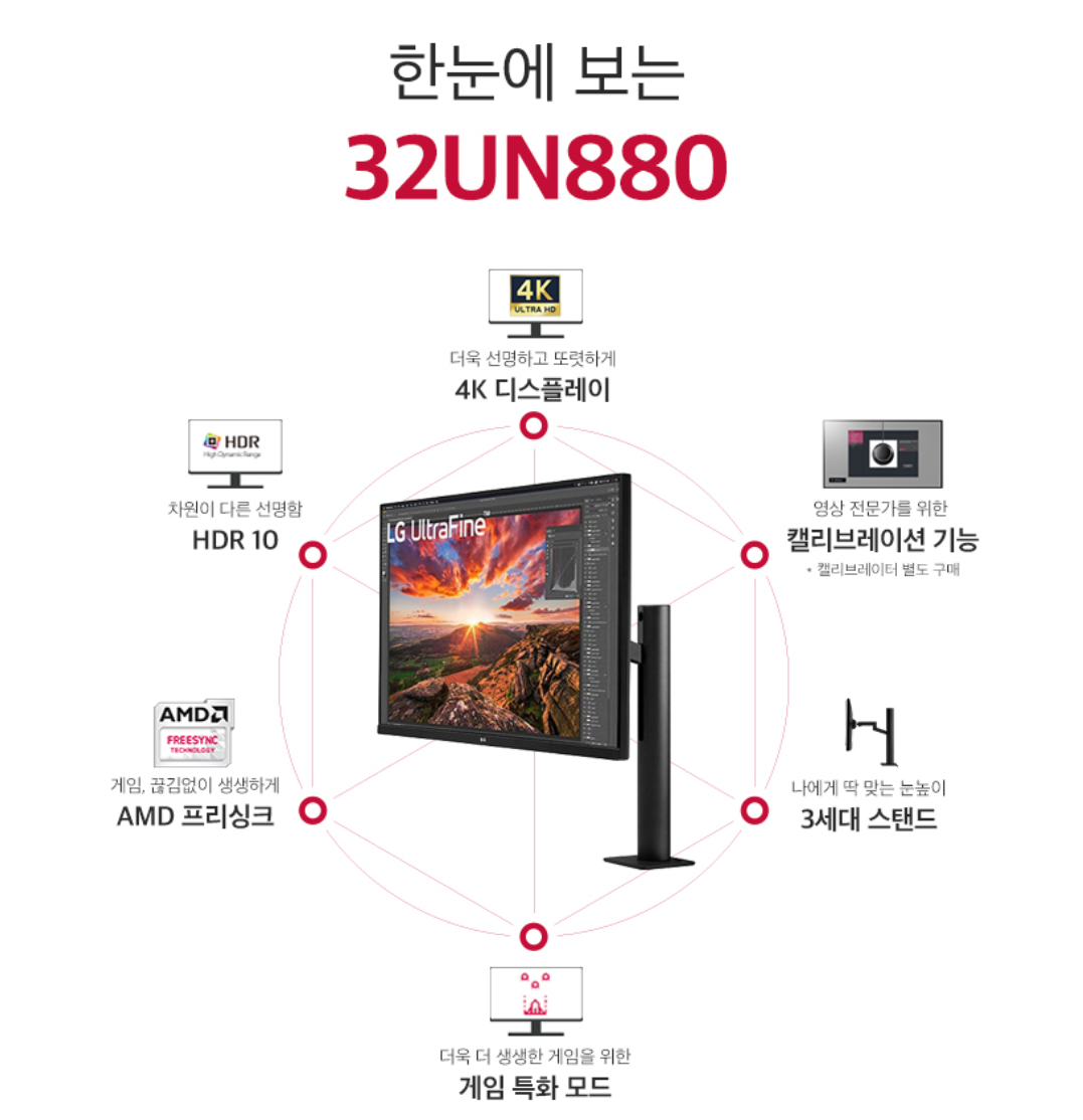 인생 처음으로 가격대가 조금 있는 모니터를 사봤다..모니터 갤러리, 퀘이사존, 외국 사이트까지 다 뒤져서 모니터 몇가지를 골랐는데고르는데 기준은 맥북 c타입을 충족하는가?, 4k 32인치인가? ips 패널인가? 이정도 였다.HP U32, LG UN880, 기가바이트 M32U 정도가 있었으나 매력적인 3세대 기둥 모니터암에 끌려 결국엔 32UN880으로 구매를 결정 했다.사진만 봐도 영롱해보여서 망설임 없이 바로 구매를 했다.위메프에서 66만원대에 특가를 하길래 바로 구매했다.https://front.wemakeprice.com/product/1353402310?search_keyword=32UN880&_service=5&_no=1&refer=AD [최대혜택 658,510원] LG 4K UHD 32형 LG..